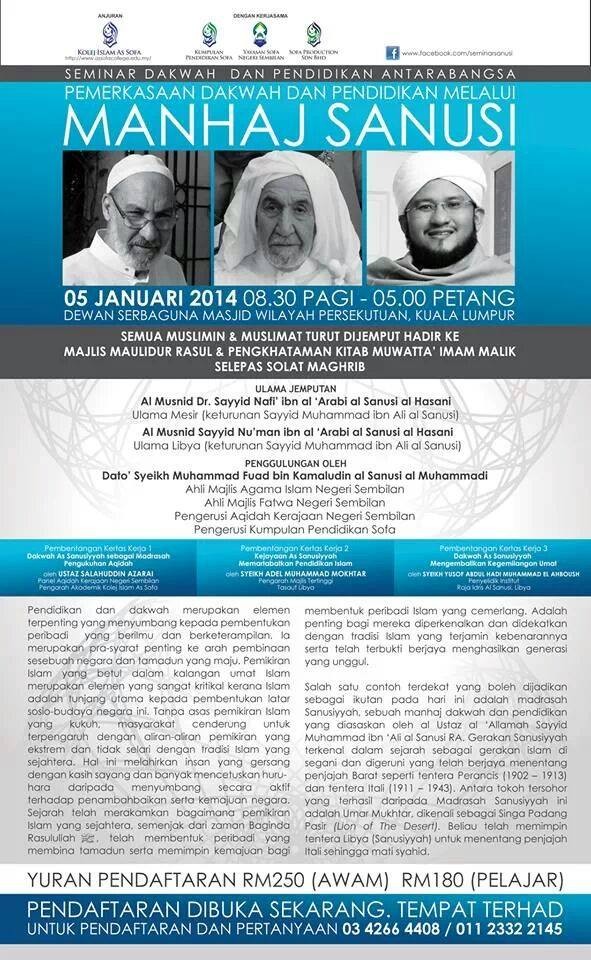 Dr. Sayyid Nafi' ibn al 'Arabi al Sanusi al Hasani, Sayyid Nu'man ibn al 'Arabi al Sanusi al Hasani Fees: RM 250 ( Awam) RM 180 (Pelajar)